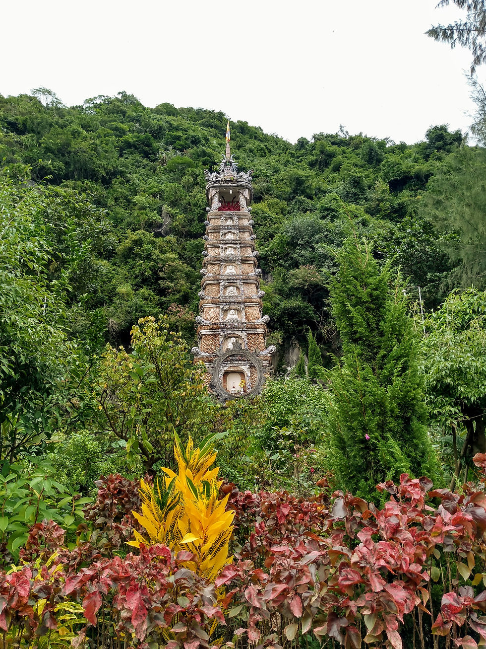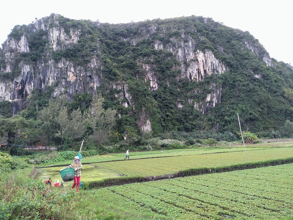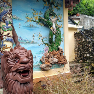 In Danang verbleef ik enkele dagen in een hostel. Deze bood gratis fietsen te leen aan; een mooie manier om Danang wat beter te leren kennen (de vorige keer had ik niet meer dan de binnenkant van mijn hotelkamer gezien in verband met de overstromingen). Dus de volgende dag zat ik op de fiets onderweg naar ‘the marble mountains’. De fietstocht er naar toe was adembenemend. Door de achterbuurten en rijstvelden waar, naar ik vermoed (tevens door de reacties van de mensen op straat), weinig tot geen toeristen komen. The marble mountains vallen erg op aangezien de vrij steile kalkstenen bergen strak boven het vlakke landschap uitsteken. Rondom de bergen bevind zich een kleine gemeenschap die volledig ingespeeld is op de bewerking van het marmer dat uit de rotsen wordt gewonnen. Doordat ik op de fiets was, en niet rechtstreeks door een toer bus afgezet werd bij de entree, belandde ik onbedoeld midden in de marble mountains zonder een ticketbewijs. Ah well… who knows (and who cares)? De hele dag heb ik rond kunnen dolen tussen de bergen, in grotten en bergtoppen met de meest waanzinnige uitzichten over de stad.