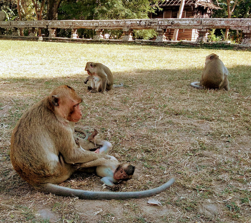 In het park aangekomen, en weer omringd door soortgenoten, beland ik midden in een troep apen (en nee, die bedoel ik niet met soortgenoten...) die besluiten om hun onenigheid midden op straat uit te vechten. Een van de apen wordt bijna het water ingegooid waarna hij wegrent en de uitdagers hem achterna jagen (zie video 😊). Helaas heb ik het moment niet meer opgenomen dat er tientallen andere apen uit de bossen verschijnen en massaal de achtervolging inzetten. Geen idee hoe het afgelopen is (ze verdwenen compleet uit zicht), maar ik vermoed dat ze het hebben bijgelegd en nu met z’n allen weer harmonieus elkaar liggen te vlooien.
