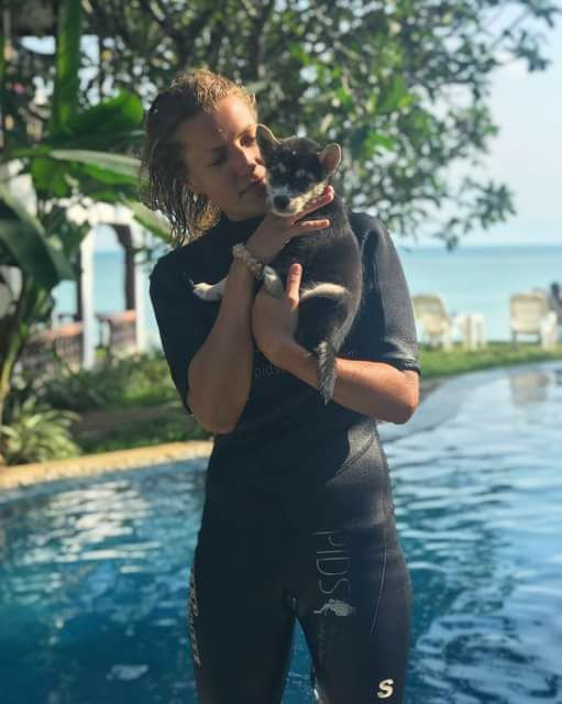 Tijdens een bioscoopbezoek (ze hebben een fantastisch buiten cinema met het beste vegan food ooit op het eiland!), kwam ik iemand tegen die ik een paar weken eerder op een feest had ontmoet. Ze bleek de manager te zijn van de bioscoop en vertelde over een pup die ze samen met haar vriend geadopteerd had. Na haar foto's van Gnome te hebben laten zien overwoog ze om ook haar te adopteren. We maakten voor de volgende ochtend een afspraak om een ontmoeting in te plannen en zo geschiedde. Na oneindig kletsen, breakfast pina collada's en spelende pups besloten ze om Gnome toe te voegen aan hun prille gezin. Best home ever aangezien ze een pup heeft om mee te spelen, op het strand woont en wij haar op elk moment kunnen opzoeken bij hun resort (10 minuten van ons) of in de avond bij de bioscoop (een goed excuus om gelijk een film te pakken en mezelf vol te stouwen met vegan food :-)).