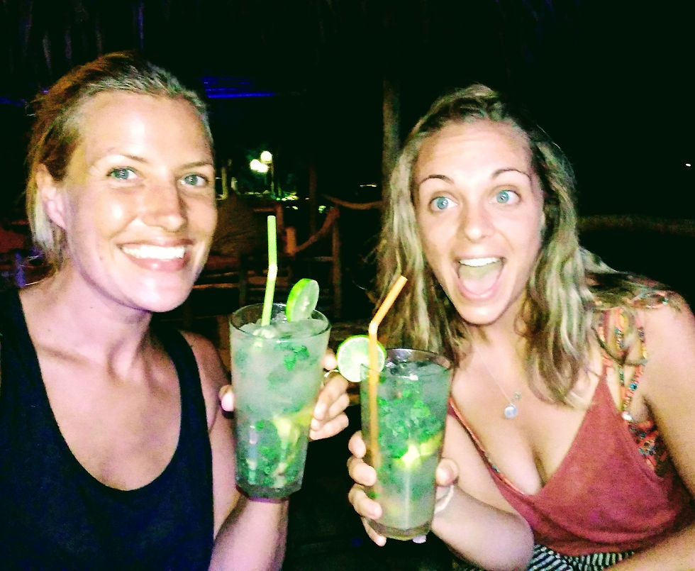 Toen het donker werd besloten we de nacht door te brengen onder de sterrenhemel. Op het strand was enkel een koppel met een zoontje die daadwerkelijk in een houten hut aan de rand van de jungle woonden. Dit koppel was hartverwarmend zorgzaam over ons (ze zullen gedacht hebben: heb je weer twee van die onvoorbereide gekke toeristen, zonder slaapspullen, eten, etc.). We kregen een rieten mat om op te slapen, een warme deken om ons toe te dekken en een heerlijke warme maaltijd voorgeschoteld. De mannen gingen op pad om hout te sprokkelen en ik bleef met vrouw des huizes achter om wat drankjes te organiseren.