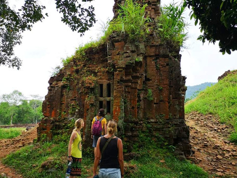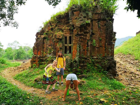 Nu moet ik eerlijk bekennen dat de honden niet de enige oorzaak van mijn slaapgebrek zijn geweest. Het is hier ook gewoon veel te gezellig. Ik ontmoet continue leuke mensen waarmee ik her en der spontane uitstapjes maak. Een Iers stel en een man uit Texas kwamen voorbij op hun motoren (ze rijden van noord- naar zuid-Vietnam) en namen mij mee op sleeptouw naar My Son: een tempelcomplex in de provincie Quang Nam, zo’n 70 kilometer ten zuidwesten van Danang. Tijdens de dynastie van de Champa was het een keizerlijke stad. In 1999 is het heiligdom van My Son opgenomen op de Werelderfgoed lijst van UNESCO. Een gezellig uitstapje wat eindigde in een heerlijke avond met live muziek in Hoi An.