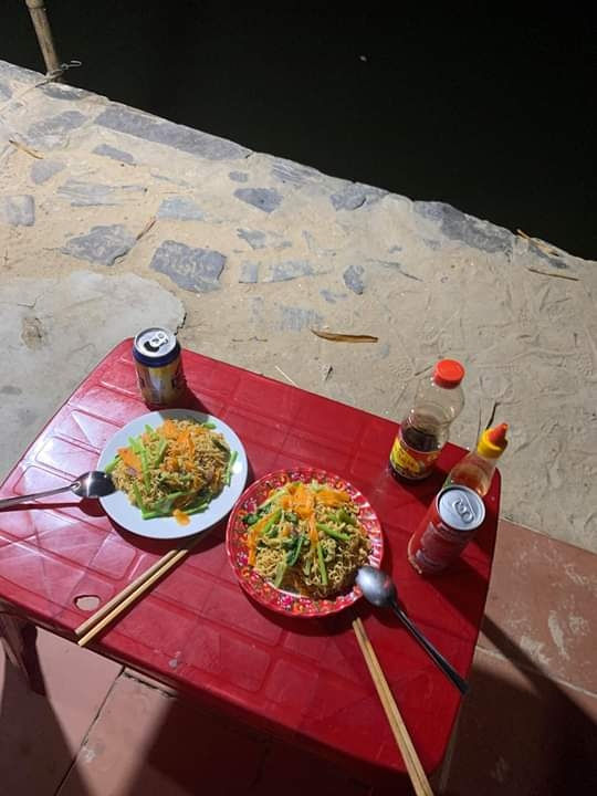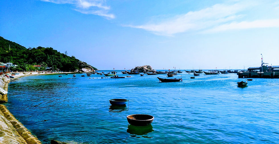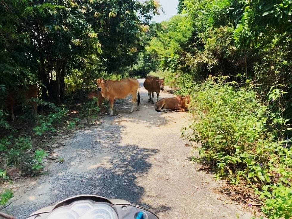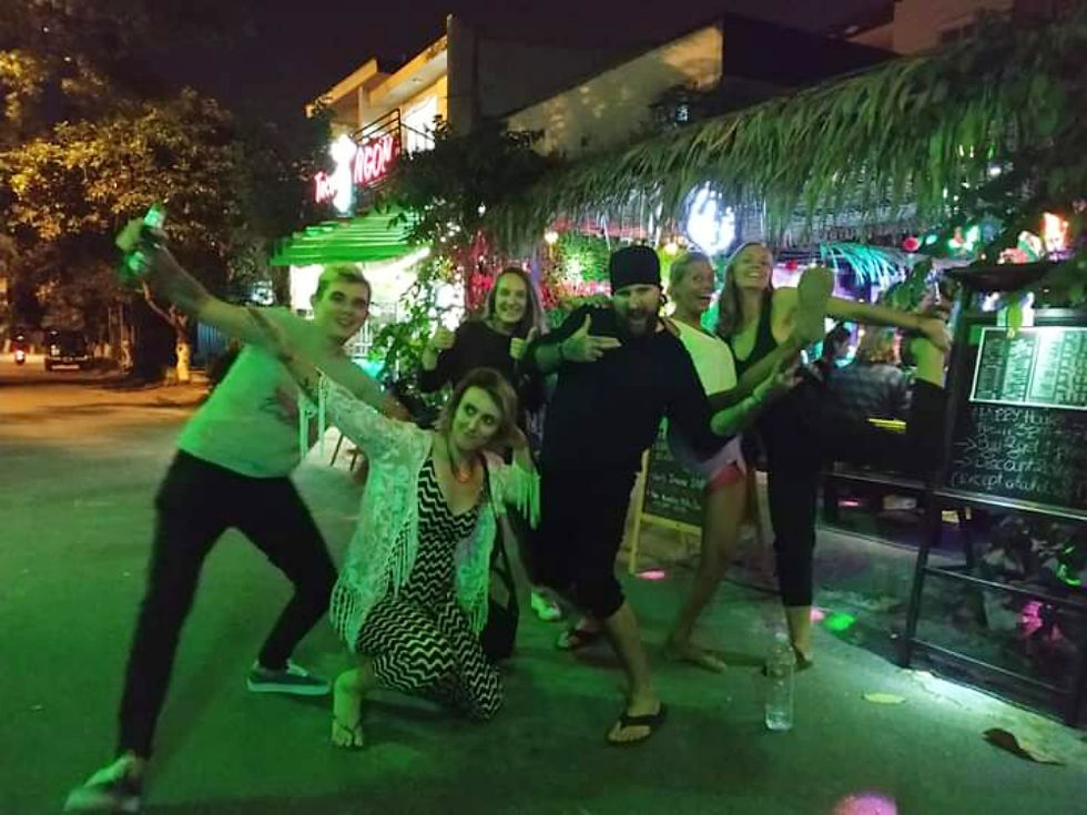 “De rest van het eiland” was grotendeels Jungle en de weinige tegenliggers op de weg waren voornamelijk geiten, koeien en een enkele aap. Het noorden van het eiland bestond uit een kustlijn met voornamelijk rotsen wat ons mooie uitzichten bezorgde. Op een gegeven moment werd de weg onbegaanbaar door massale rotsblokken die ooit losgekomen waren en nu (sinds mensenheugenis?) de weg blokkeerden, waardoor we gedwongen werden dezelfde weg terug te nemen. Na wederom een dag avontuur met magische momenten, namen we de laatste boot terug naar Hoi An. In Hoi An aangekomen sloten we ons avontuur af met een hapje en een drankje en, je raadt het al, goede livemuziek 😊