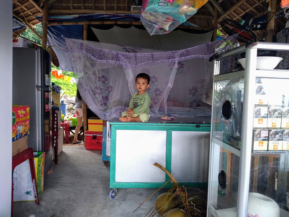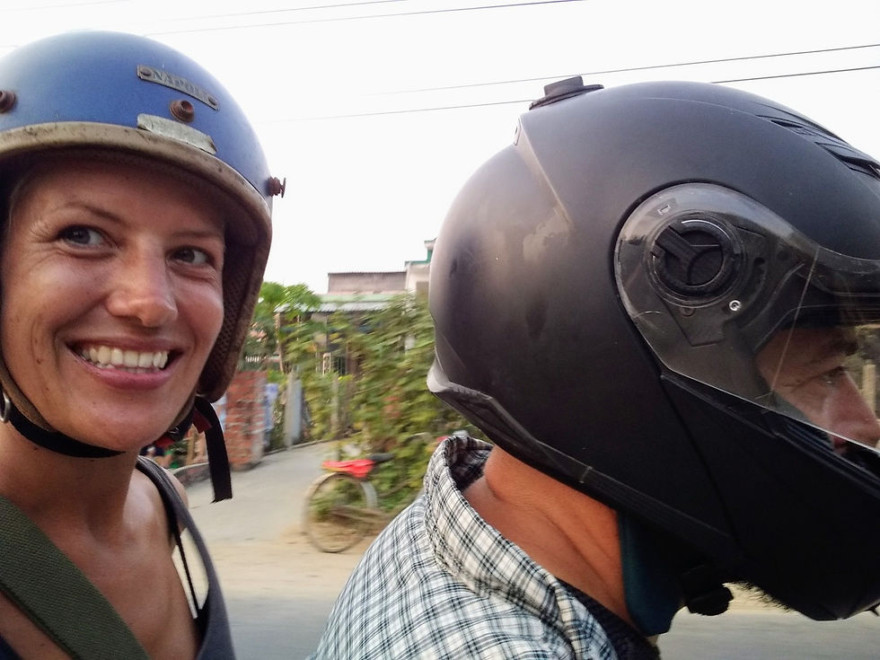 De volgende ochtend werden we wakker met de zonsopkomst, Ook deze ochtend werden we verwelkomd door het koppel met koffie en ontbijt. Ondanks dat ze totaal geen Engels spraken (en mijn Vietnamees nog steeds niet veel verder komt dan "Xin Chao!"), hadden we de grootste lol bij iedere poging tot communicatie. Ook hun zoontje vond ons gezelschap hilarisch en barstte een aantal keren in schateren uit. Na het ontbijt regelden ze een boot waarmee wij terug naar de haven konden (Google translate zorgt ervoor dat we, naast alle ongein, ook nog daadwerkelijk kunnen overbrengen wat we bedoelen). In de haven huurden we een scooter om de rest van het eiland te gaan verkennen: zo gezegd zo gedaan.