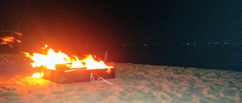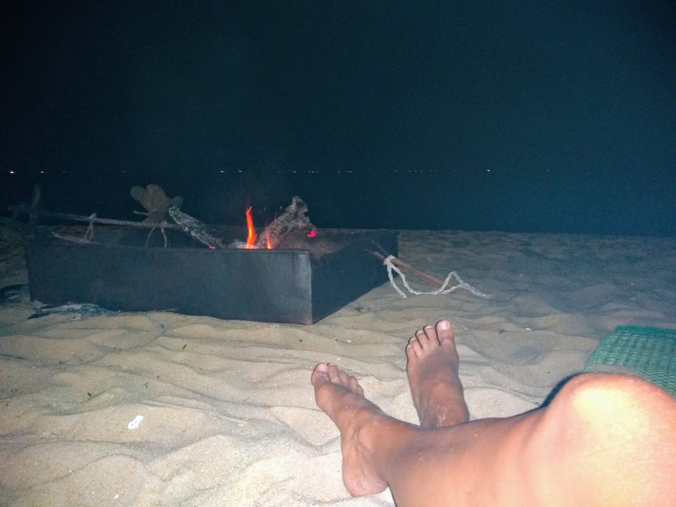 Nadat we een mooi kampvuur hadden bewerkstelligt verliet het koppel ons en bleven wij achter op ons comfortabele nieuw verworven bed. Uren keken en fantaseerden we (met het decor van een knisperend vuur en vallende sterren) over het heelal, het universum en filosofeerden we over de zin en onzin van het leven, waarbij we uiteindelijk beiden langzaam in slaap dommelden…