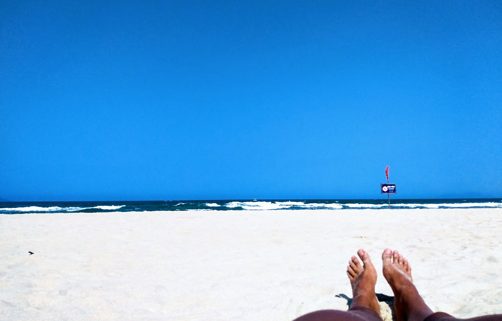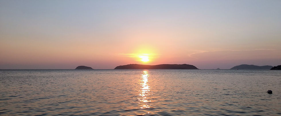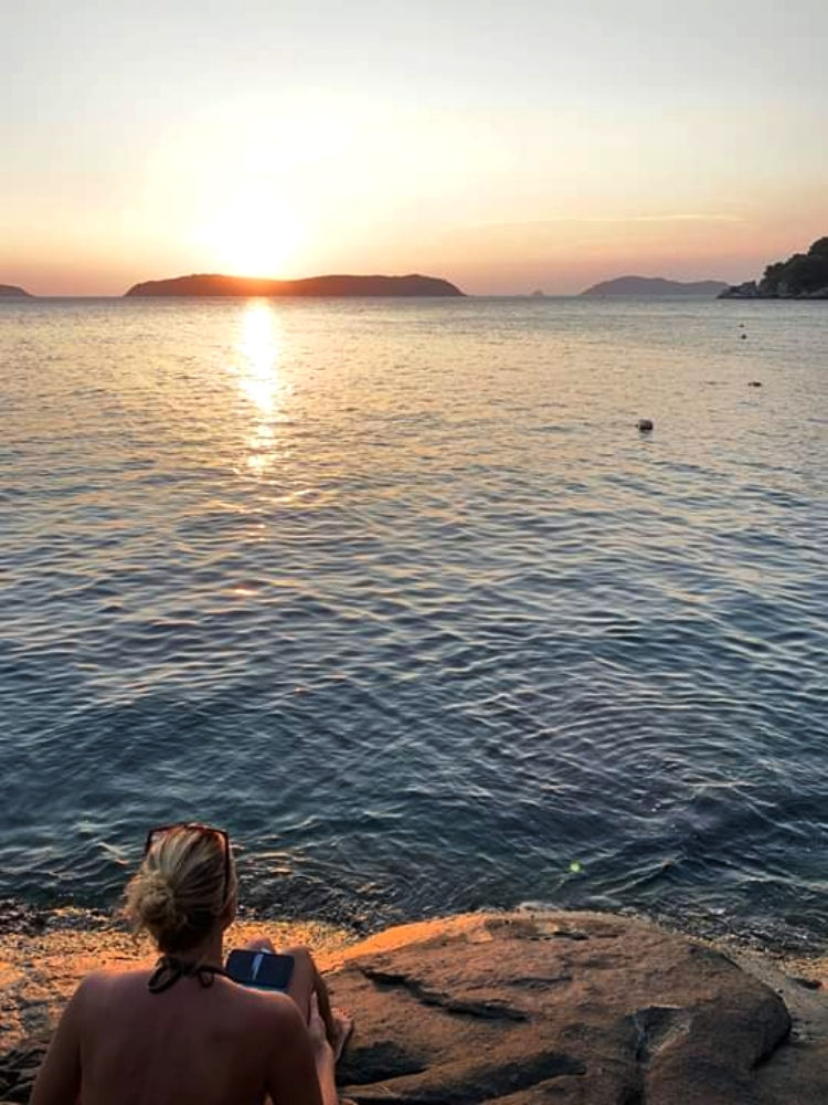 Op de bonnefooi reden we (wederom op mijn betrouwbare scooter) naar Hoi An, vanwaar de boten naar het eiland vertrekken. Geen van ons had enig onderzoek verricht naar tijden en/of eventuele mogelijkheden voor overnachtingen etc. We vonden een van de laatste boten die de oversteek nog zou maken die dag, en we mochten mee. Aangekomen op het eiland liepen we door het kleine dorpje van de haven op zoek naar witte stranden en palmbomen. En die vonden we. Na een half uur lopen, zonder andere mensen tegen te komen, belanden we op een idyllisch strand dat rechtstreeks uit een marketingcampagne voor een vakantie leek te komen. Hier besloten we een duik te nemen in de zee en de zonsondergang te bewonderen.
