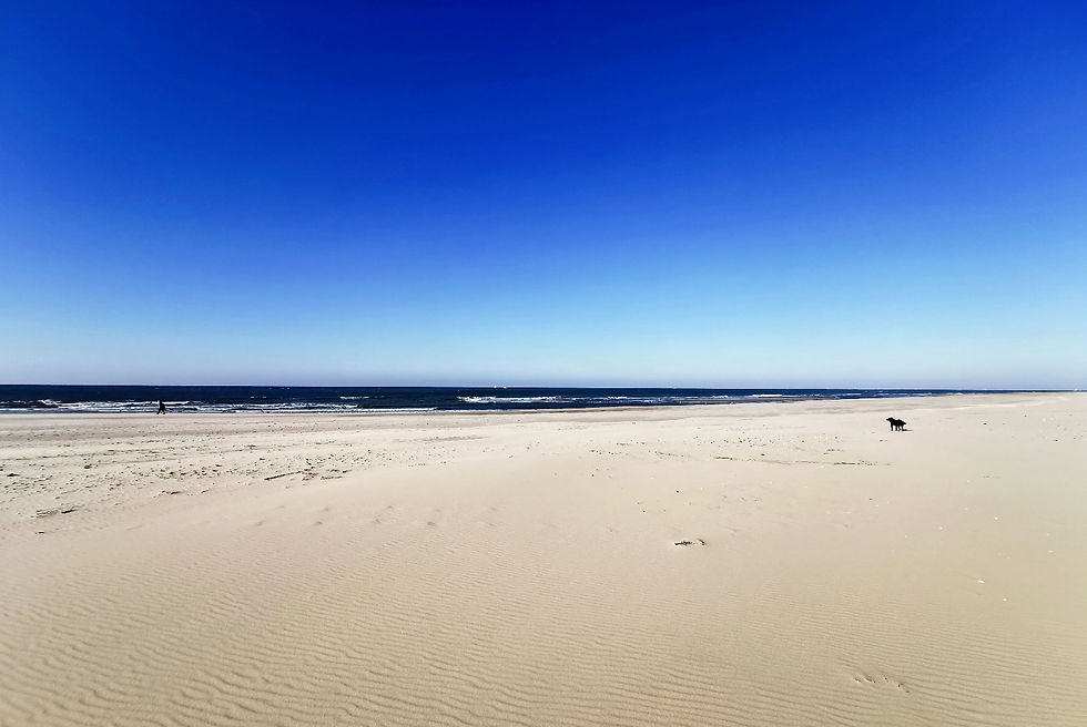 Daarnaast zijn we zo veel mogelijk naar het strand geweest (wat ongeveer 20 minuten fietsen was). Het strand bij Monster is ideaal om lekker uit te waaien en een waar zandparadijs voor honden. Alhoewel Noël daar na het eerste bezoek anders over dacht. Er was namelijk aardig wat wind die dag (waarvan ik dacht: ‘lekker strandweer’) waardoor het zand op stuifzand leek en je daardoor gelijk een bek vol zand kreeg. Nu steek ik iets boven Noël uit waardoor dat arme beestje naast haar snuitje ook haar ogen vol zand kreeg. Als een hulpeloos blind hulpbehoevend hoopje ellende wilde ze zo snel mogelijk weer naar rustiger vaarwater. Oké; morgen poging 2...