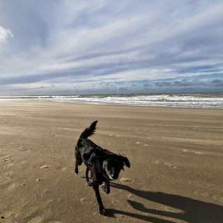Ik besloot het KNMI weer iets serieuzer te gaan nemen en niet meer met windkracht 7 naar het strand te gaan. Gelukkig heb ik Noël haar traumatische ervaring om weten te keren in de weken erna en is ze net zo dol op het strand geworden als ik!