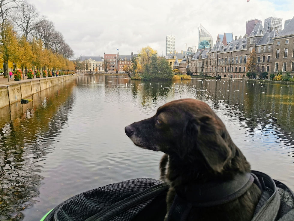 Een uur later stapte ik uit in Den Haag en had ik nog 45 minuten voor de boeg naar mijn eindbestemming. Gelukkig was de lucht weer opgeklaard en kon ik zonder gedoe door trappen naar Honselersdijk. Daar aangekomen stond de Ierse mevrouw met Ralph de Pyreneese berghond ons enthousiast op te wachten. Bestemming bereikt: ons verblijf voor de komende maand. Tien jaar geleden (als vers afgestuurde diermanager) heb ik bijna twee jaar in Den Haag gewoond en gewerkt bij het Haags Dierencentrum (asiel). De stad Den Haag is dus niet onbekend voor mij zou je denken. Niets is minder waar. Dit nieuwe bezoek heeft mij doen beseffen dat ik destijds in een ‘asielbubbel’ heb geleefd. Ik fietste (met Hondje; mijn vorige metgezel) naar het werk, werkte op het asiel, keerde huiswaarts, deed boodschappen , ging eten, slapen en repeat. Uiteraard was er ook tijd voor plezier maar dat ging altijd samen met de asielmensen. Destijds heb ik daar nooit bij stilgestaan maar eigenlijk leefde ik in mijn eigen bubbel en ben ik nooit buiten dit bubbeltje op ontdekking gegaan in deze omgeving.