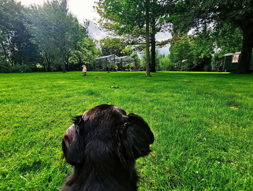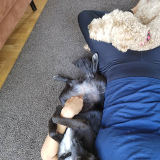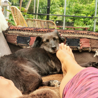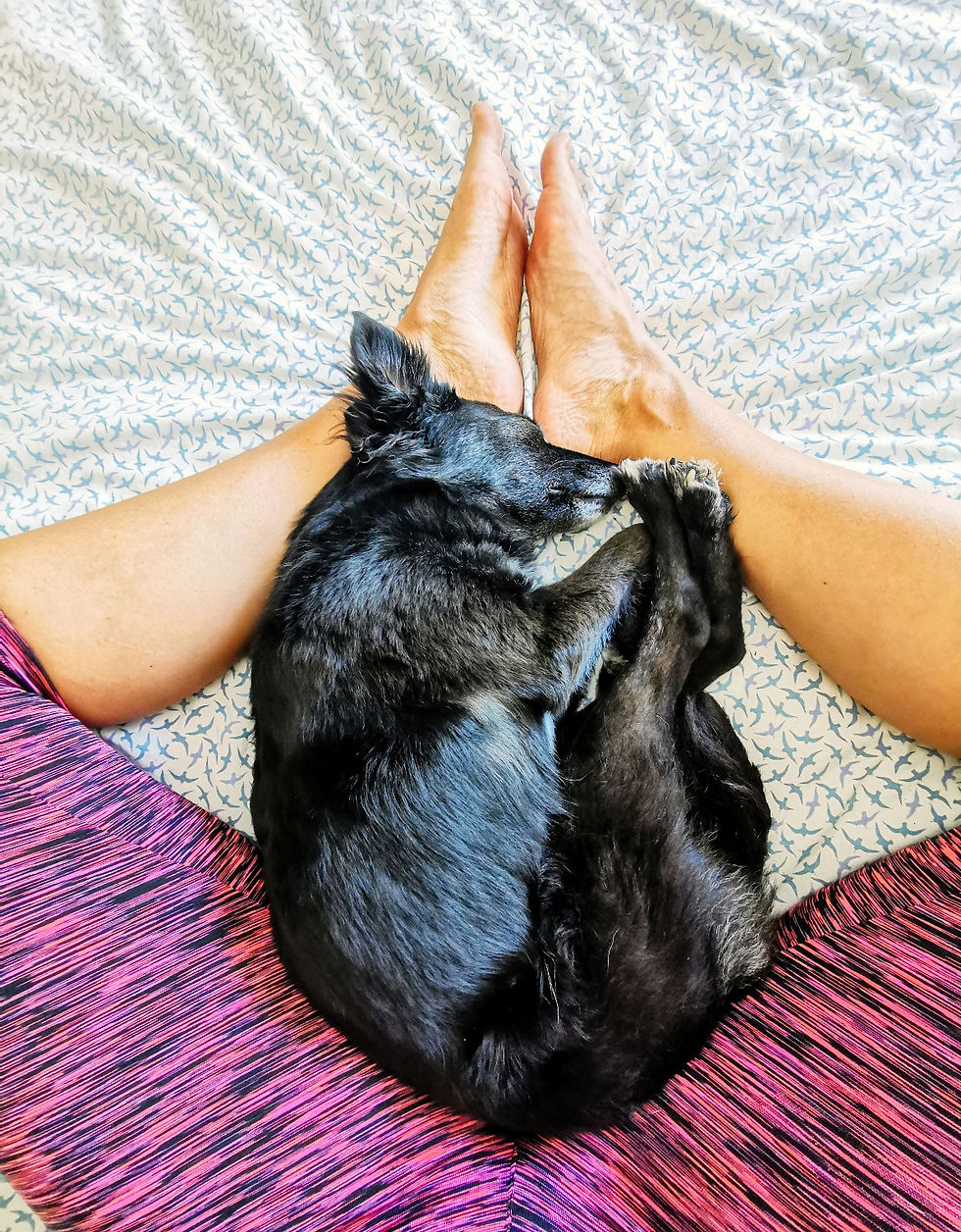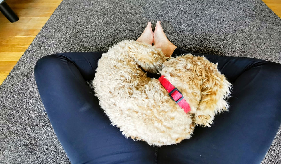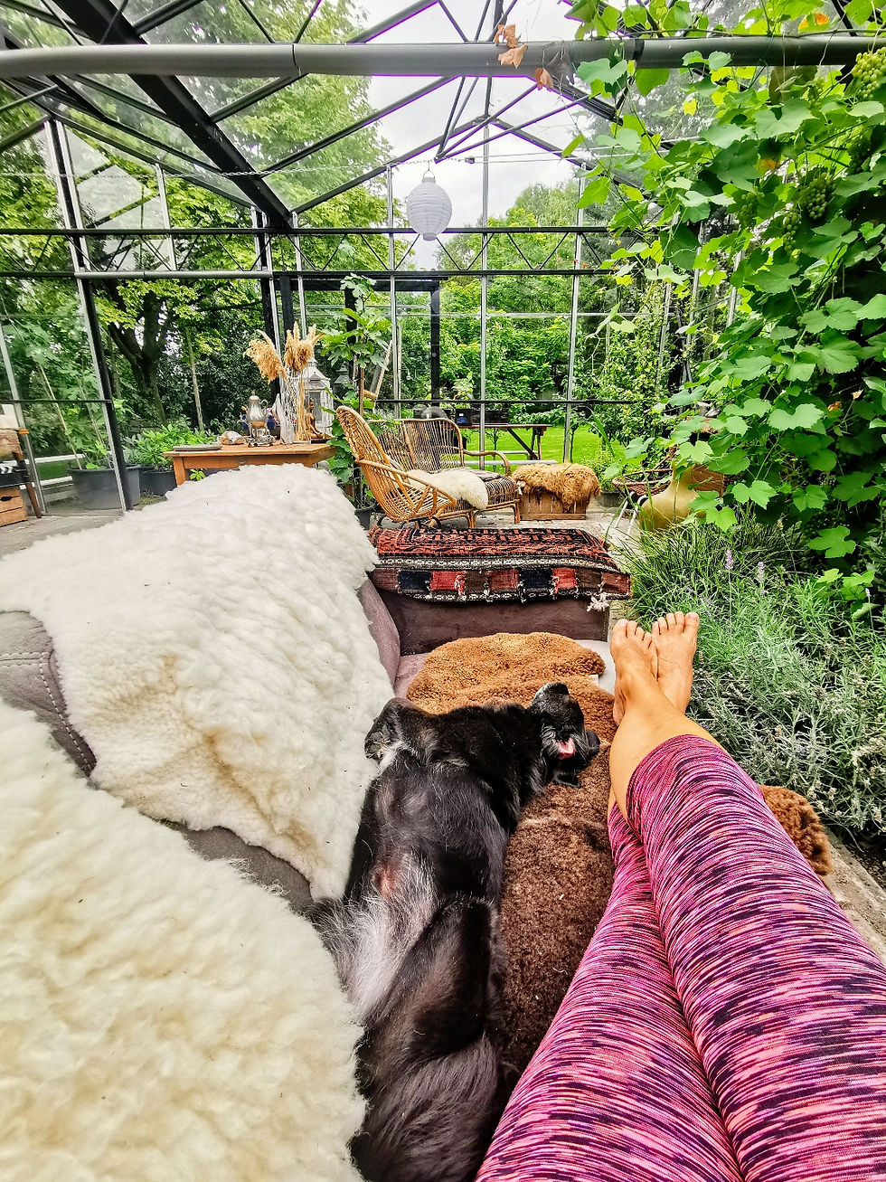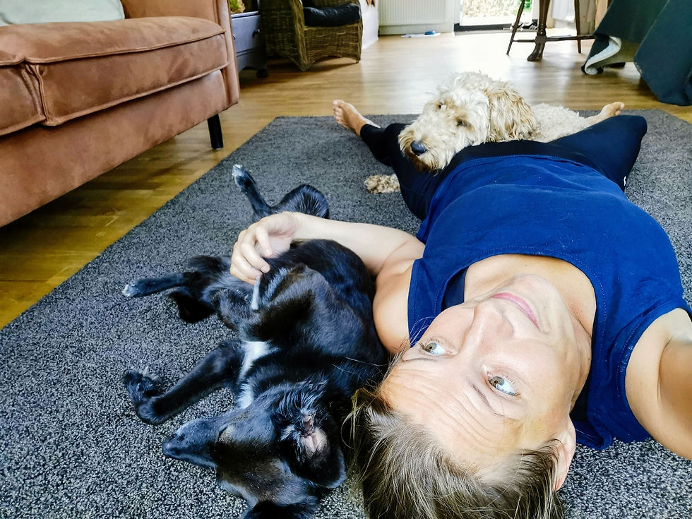 Yoga met de hondjes ; veel verder dan Down dog komen we niet...