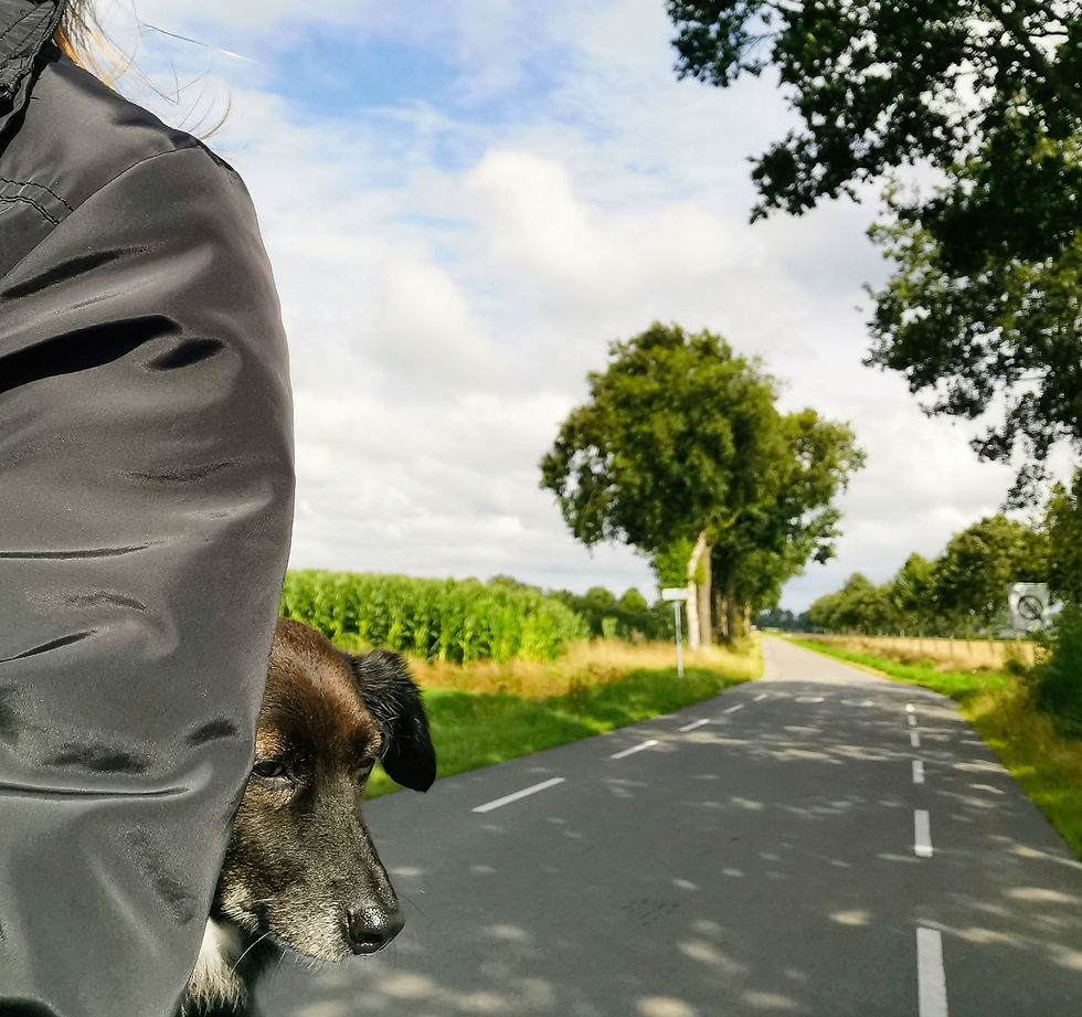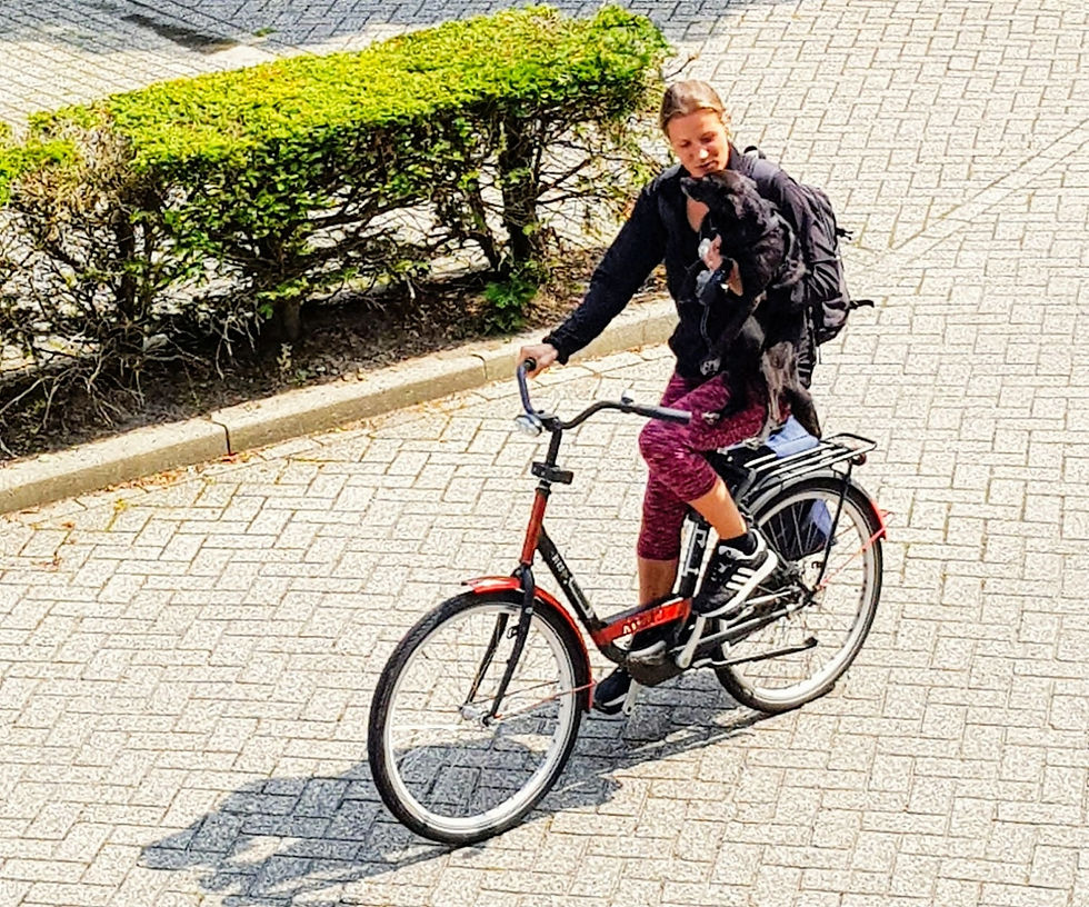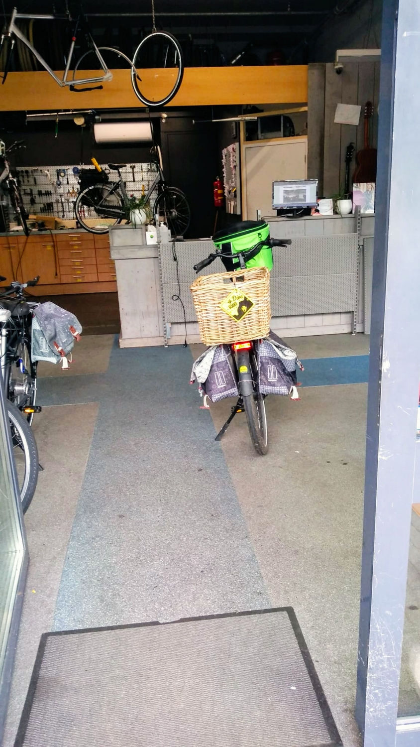 Mijn fiets werd een paar dagen later weer opgehaald bij de hondenmensen in Zwolle. Deze keer in combinatie met een gezellige ouderwetse hondenborrel. Mijn fiets kon tegelijkertijd even naar de fietsenmaker voor een onderhoudsbeurt bij de fietsenmaker waar ik hem eind vorig jaar van gekocht had. Noël wilde graag mee om fiets weg te brengen want de fietsenmakermannen adoreren haar en stoppen hondenkoekjes in haar. Met de vele opmerkingen van de laatste dagen over dat Noël zo slank is geworden (reizen brengt veel stress met zich mee😉) liet ik haar genieten van deze frolic overload. Zij blij, fiets blij, ik blij.