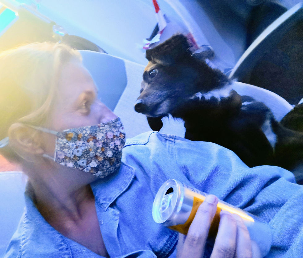 Om het begrip “hondenmens” nader te verklaren (blijkbaar bracht dit begrip bij sommigen wat vragen teweeg): we hebben elkaar tijdens de eerste lockdown leren kennen omdat ons enige ‘uitje’ onze honden uitlaten was; dat hebben we volledig uitgebuit door van het plaatselijke hondenveld ons eigen terras te creëren en zo konden we aan onze behoefte aan sociaal contact blijven voldoen, wat geresulteerd heeft in blijvende hondenborrels op zijn tijd. Zo resulteerde de avond in een gezellige beestenboel met hondenvriendjes en hondenmensen. Die nacht mochten we logeren bij een vriendin in de buurt zodat ik weer kon herstellen van alle gezelligheid en de volgende dag kon gaan bedenken wat onze vervolgbestemming zou gaan worden…