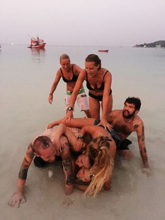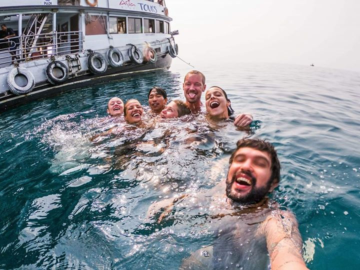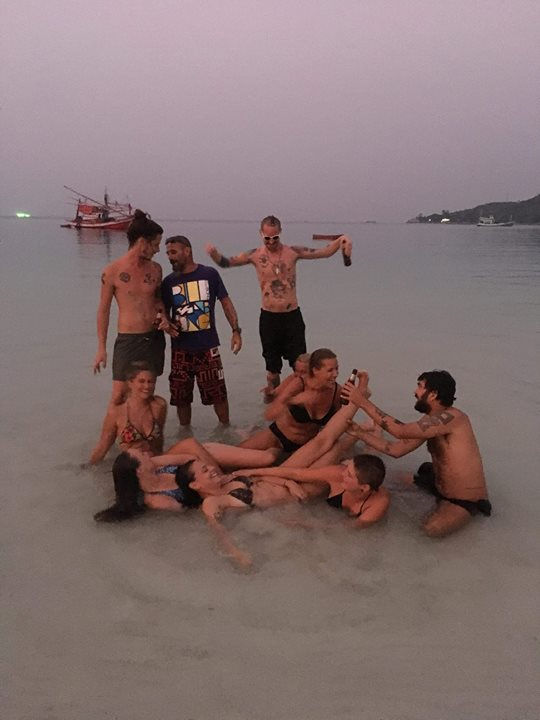 Enfin, het biedt me de gelegenheid om de komende maand nog op Koh Phangan te vertoeven. Doordat ik voor de visa run een week ziek in bed heb doorgebracht (griep/ dengue/te veel feestjes/wie zal het zeggen?) heb ik wat vertraging met mijn dive master opleiding opgelopen. Na terugkomst uit Maleisië heb ik mijn laatste openstaande opdrachten met succes afgerond. Een van de laatste opdrachten was het maken van een duikmap van Koh Ma, één van de lokale duikbestemmingen. Ik had hier al vaker gedoken/gesnorkeld en moest nog eenmaal er naar toe om de puntjes op de i te zetten (exacte oriëntatiepunten, dieptes, etc.). Met mijn rugzak gepakt, een scooter gehuurd en opgetogen om een dag alleen op het strand te spenderen, poogde ik het resort te verlaten. Totdat een van de ons-kent-ons mensen mijn vertrek opmerkte en vroeg: "where are you going?". "Euh… Koh ma… you wanna come?". En voor ik het wist besloot iedereen zijn werk neer te leggen en mij te vergezellen naar Koh Ma. So far voor een rustig dagje strand...