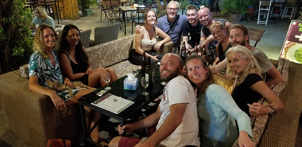 De eerste dagen in de Zuid-Chinese zee was ik, naast het stoeien met mijn surfplank, tevens druk aan het proberen mijn zwemkleding aan te houden. Door de immense kracht van de golven (die elkaar op enkele seconden navolgen) kon ik mijn bikinitop in deze luttele seconden weer optrekken alvorens door de volgende golf weer neergeslagen te worden (gelukkig zijn we iedere keer vrijwel de enige in het water). Tijdens mijn surfpogingen ontdekte ik ook vrij snel waarom de meeste dames met een legging surfen (ook het bikinibroekje is niet opgewassen tegen het watergeweld). Daarnaast was ik bezig met het proberen te ontwijken van de kwallen die iedere keer weer een stuk huid van mijn benen en/of armen vonden om hun giftige tentakels op neer te laten. Na twee dagen gehannes ga ik nu met een legging en lange mouwen aan te water om niet aangeklaagd te worden voor nudisme en niet meer de onplezierige kwallensteken te hoeven te vrezen. Dat werkt een stuk beter.