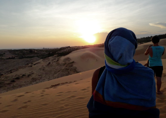 De volgende dag sloot mijn partner in crime (waarmee ik tevens een deel van mijn vorige reis door Thailand heb gespendeerd) bij me aan. Aangezien we beiden nog met een jetlag kampten, besloten we een rustige dag te hebben. Wat slenteren door de stad, een markt bezoeken, in het park chillen en wat eten en drinken op de vele terrasjes aan de straat. De volgende dag vertrokken we met een bus naar Mui Ne, het plaatsje waar we de eerste twee maanden van onze reis zullen verblijven. Vanuit Nederland had ik contact gelegd met een kitesurf school die regelmatig vrijwilligers zoeken. In ruil voor een aantal uurtjes werk zorgen zij voor gratis accommodatie en eten tijdens je verblijf. Als bonus kun je in je vrije tijd ook gratis gebruik maken van hun surfmateriaal. Zo ontstond mijn nieuwe doel voor de komende maanden: leren surfen.
