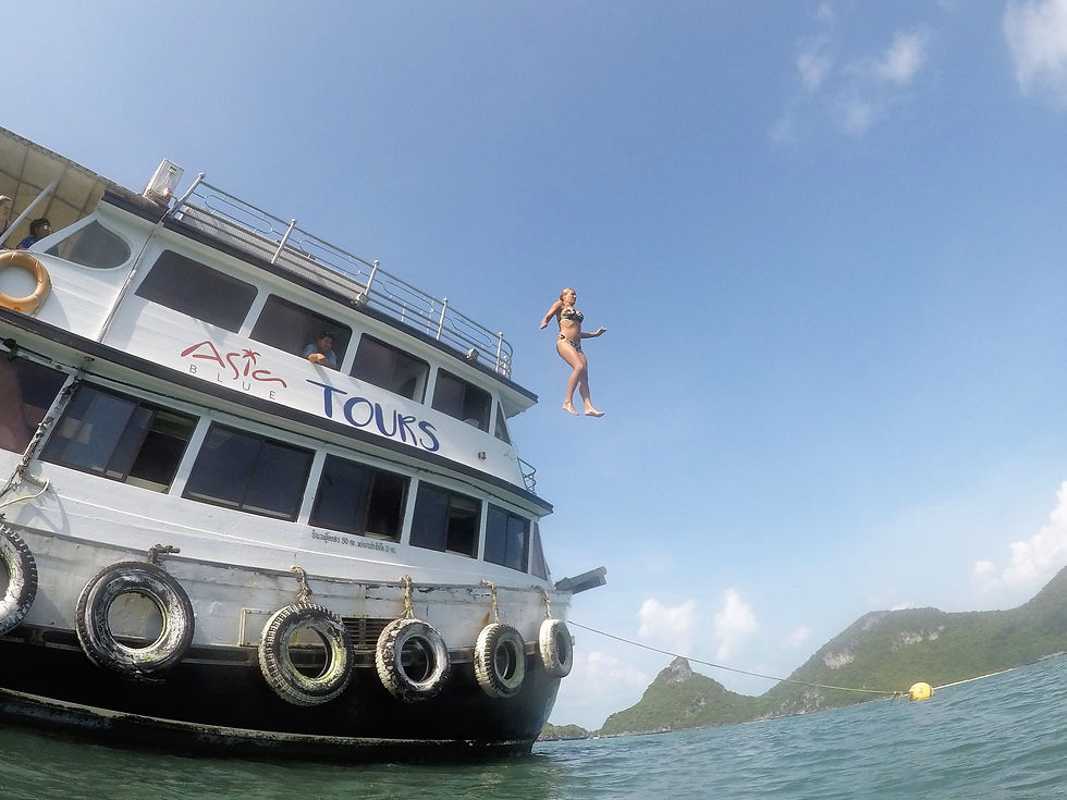 De daaropvolgende dagen hing ik de toerist uit op Koh Tao (en zag ik uiteindelijk haaien, al dan niet in shark bay). Het is een klein eiland met voornamelijk duikers. Ik bezocht een paar watervallen en andere 'points of interest'. Na het eiland een paar keer rond te zijn geweest besloot ik verder te trekken naar Koh Samui: het grootste eiland in de driehoek Koh Phangan, Koh Tao, Koh Samui. Mijn visa zou bijna verlopen en hier kon ik het weer laten verlengen voor 30 dagen. Mijn partner in crime op Koh Phangan was inmiddels bij me aangesloten aangezien hij tevens zijn visa moest verlengen en min of meer dezelfde reisplannen had dan ik. We verkende het eiland, lagen op het strand, gingen naar een echte bioscoop, dronken cocktails en zagen de beste Thaise rock band ooit (de eerste avond werd ik het podium op gesleurd om een lied mee te blèren en de tweede keer was partner in crime de uitverkorene). Na het verlengen van onze visums trokken we een paar dagen later naar de westkust van Thailand. Khao Lak werd de volgende stop.