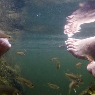 Vastbesloten om niet het water te verlaten zonder een haai te hebben gezien, zwom ik stug door. Totdat na enkele meters mijn masker begon vol te lopen met water. Ik ontdekte minuscule gaatjes aan de zijkant die zeer waarschijnlijk waren veroorzaakt tijdens de val. Uiteindelijk besloot ik om terug naar de kant te gaan. Een haai tegenkomen wanneer je omgeven wordt door bloed en tegelijkertijd niet kunnen zien, is misschien niet het meest ideale scenario. Terug op de rots liet ik nog een mooie plas bloed achter op de rotsen: een door bloed doordrenkte rots bij het te water gaan van 'shark bay', iets voor de volgende snorkelaars om over te fantaseren ;)